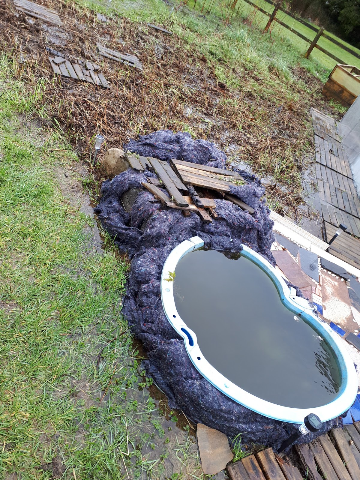 Almost every where was completely under water today so I wasn't intending doing anything outside, but while I was out under the trees with the dog I noticed the pile of kerbstones and two bags of compost lying there and thought it might be a good spot to move my shade loving plants. I have several Hostas, Ferns and Astilbes 'temporaryily' in the big bed out the front since I moved in. Now would be a good time to move them while they are mostly still dormant. I cleared off some of the grass and was amazed how dry the soil was here. Then I moved some of the kerbs into place. It was almost dark by then, and very cold, so I left it at that until tomorrow.